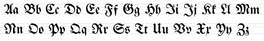 | Имя | Latin (Fraktur variant)[1] и latin (variante brisée)[1] |