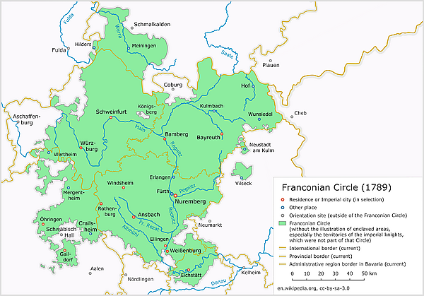 2 июля 1500 года на Аугсбургском рейхстаге Священная Римская империя была разделена на шесть имперских кругов. Эти первые круги изначально были пронумерованы, Франконскому имперскому кругу был присвоен номер 1: