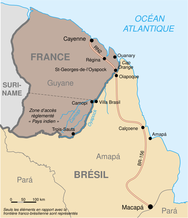 Большая часть границы проходит по реке Ояпок, что закреплено Утрехтским мирным договором 1713 года. Однако Франция нарушила его, оккупировав территории к востоку от реки. Так возник длительный франко-бразильский территориальный спор, завершившийся лишь в 1900 году — с помощью международного арбитража — в пользу Бразилии.