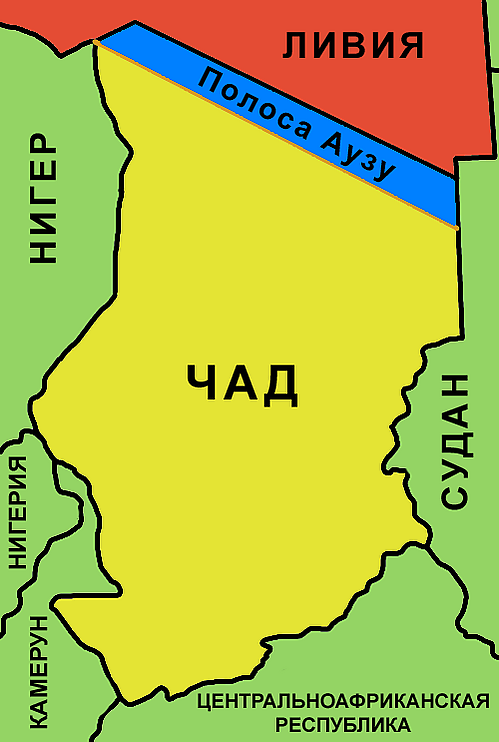 Италия также получала ранее спорную полосу Аузу площадью 114 тысяч км², которая располагается между французским Чадом (к югу от этой полосы) и итальянской Ливией (к северу от этой полосы)[11][12][13][9] Муссолини, говоря об этом приобретении Италии, карикатурно преуменьшал его значение[10]: