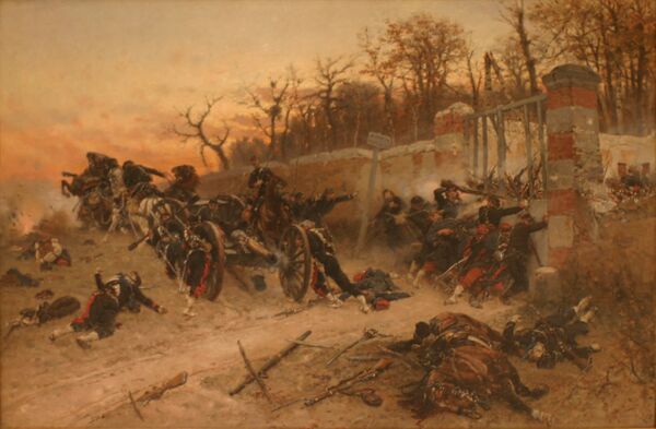 19 января французами была сделана новая, третья и последняя попытка прорыва блокады, была сделана попытка прорваться из Парижа на юг, к Луаре, опираясь на Мон-Валериен, окончившаяся полным провалом и потерей более 4 тыс. человек. 22 января в Париже вспыхнул бунт, который, однако, вскоре удалось подавить. 28 января было заключено перемирие на 21 день, после исчерпания запасов продовольствия и топлива парижский гарнизон капитулировал, национальная гвардия сохраняла вооружение, при этом немецкие войска занимали часть фортов Парижа, чтобы предотвратить возможность возобновления военных действий. Но военные действия продолжались в восточной части страны, в районе действия армии Бурбаки. Французская сторона, не имея достоверных сведений об исходе борьбы, настояла на исключении из перемирия этого района в надежде на успешный исход борьбы[36]. Немцы не стали разубеждать французов. Прижатая к границе французская армия Кленшана (около 80 тыс.) 1 февраля перешла у Верьера в Швейцарию, где и сложила оружие. Осажденная крепость Бельфор продолжала сопротивление до подписания перемирия, отразив новую попытку штурма 27 января, что явилось некоторым утешением для французов в этой упорной и несчастливой кампании.