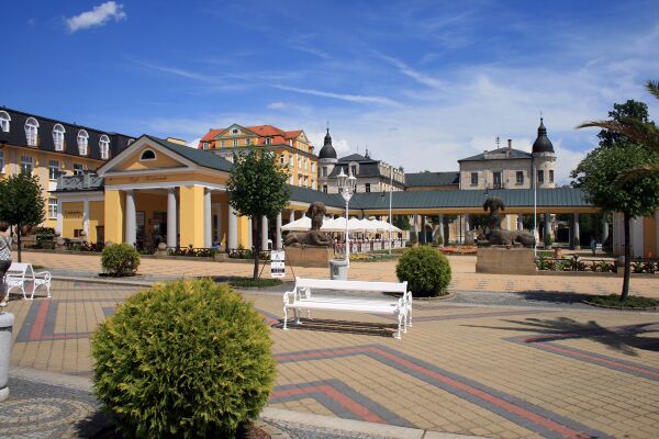 Франтишкови-Лазне — город с 1793 года. Как бальнеологический курорт существует с 1827 года на базе Хебских железисто-щелочных источников (всего их 24). Богемские минеральные воды углекислые хлористые натриевые, сульфатно-гидрокарбонатные, отличаются также высоким содержанием железа[6]. Лечение заболеваний сердечно-сосудистой системы, опорно-двигательного аппарата, заболеваний мочеполовой системы. Методы лечения — ванны, ингаляции, питьё минеральных вод. В лечении используется железистый торф. Близ города — природный парк Гайек.
