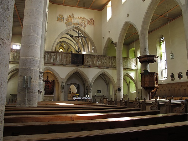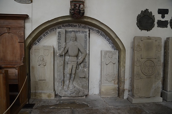 Особого упоминания заслуживают многочисленные захоронения внутри церкви — первое из которых было сделано в 1285 году в только ещё строящемся здании, а последнее относится к 1789 году — в том числе двойная гробница Ганса фон Пойлендорфа (нем. Hans von Peulendorf) и его жены Маргариты, расположенная у колонны рядом с леттнером[16].