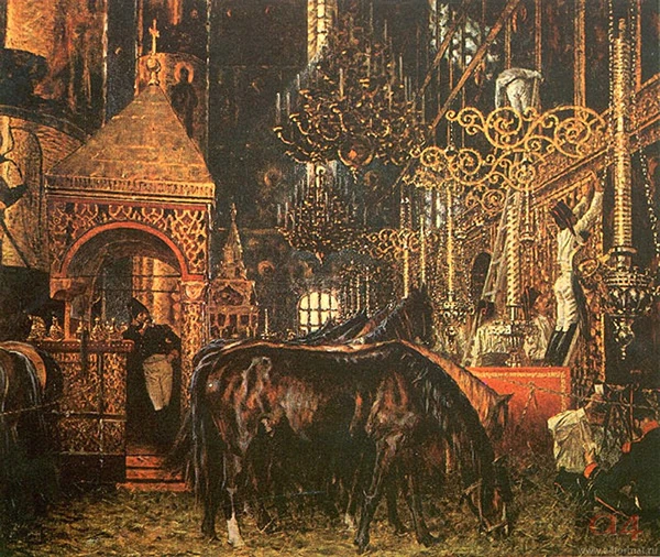 А. А. Шаховской приводит единственный случай умышленного оскорбления чувств православных верующих: «в алтарь Казанского собора втащена была мёртвая лошадь и положена на место выброшенного престола»[20].