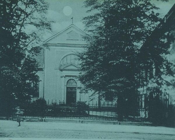 В 1733—1736 было сооружено здание церкви для французской протестантской общины по планам известного, «придворного» архитектора Шультхайса фон Унфрида (нем. Schultheis von Unfried). Церковь была освящена в 1756 году. Здание находилось на улице нем. Königstrasse (в нацистское время — нем. Strasse der SA, сейчас улица Фрунзе).