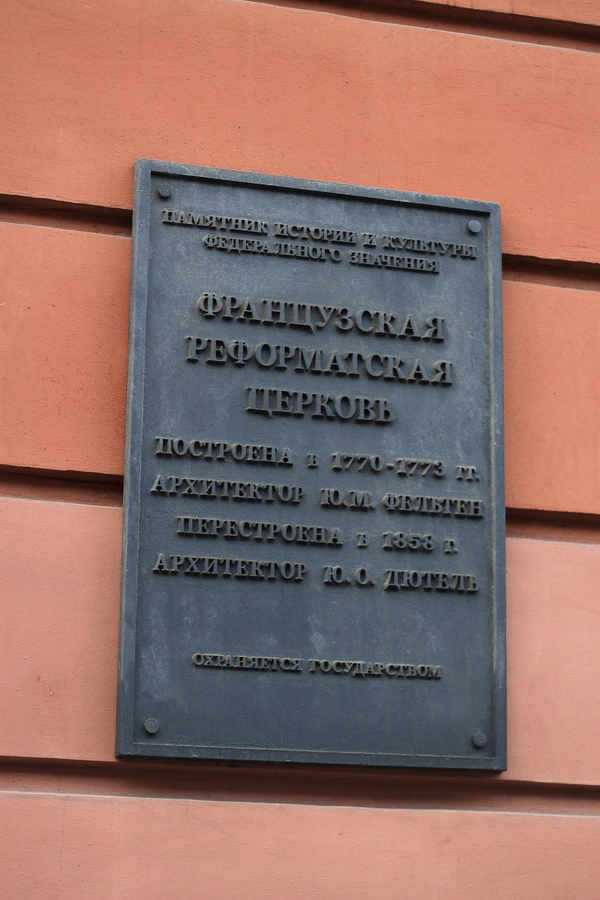 13 мая 1770 было заложено новое здание Французско-немецкой реформатской церкви Св. Павла, которое сооружалось в течение двух лет по проекту архитектора Ю. М. Фельтена. На новый каменный храм собрал средства лейб-хирург Фусадье. Также в строительстве участвовал каменных дел мастер Дж. Руска. Украшенный плоским куполом с золотым крестом храм на 300 человек расположился вдоль красной линии. Церковь была освящена 22 декабря 1772 года.