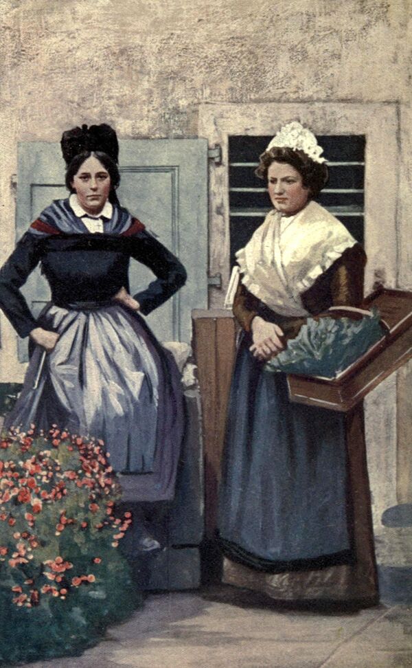 В XIX веке на женский костюм оказывает сильное влияние городская одежда. В частности, появляется женское нижнее бельё — панталоны.
