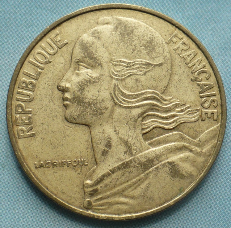 В январе 1960 года французский франк был деноминирован в соотношении 100 старых франков к одному новому (nouveau franc)[10]. 1 января 1963 года название «новый франк» было заменено на «франк». Старые одно- и двухфранковые монеты продолжали находиться в обращении по цене одного и двух сантимов. Инфляция влияла на стоимость национальной валюты, но она протекала гораздо медленнее, чем в некоторых других странах Европы. Тем не менее, когда 1 января 1999 года евро заменил франк, последний стоил в восемь раз меньше, чем в 1960 году[9].