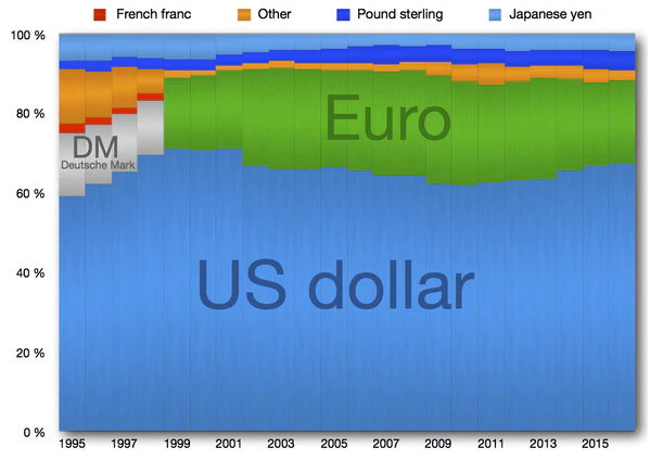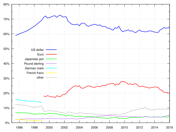 | Источники: 1970—1984: BIZ (Банк международных расчётов): The evolution of reserve currency diversification, December 1986 (engl.) | |||||||||||||||||||||||