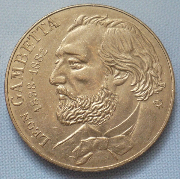 Выпуск памятных монет во Франции начат в 1982 году с монеты номиналом 10 франков в честь 100-летия со дня смерти премьер-министра Франции Леона Гамбетты. Они были выпущены следующими номиналами: