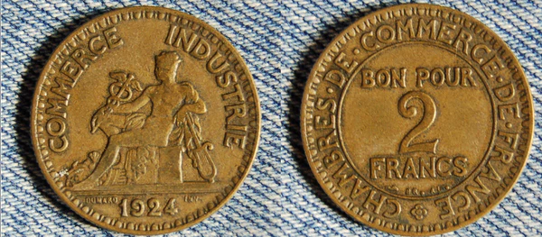 Монеты, выпускавшиеся в период 1914—1927 гг., поскольку они не покрывались золотом, выпускались не от имени национального банка Франции, а как «боны» / «токены» Торгово-промышленной палаты Франции. Кроме того, существовали многочисленные частные монетные выпуски (от имени городов, регионов и частных предприятий).