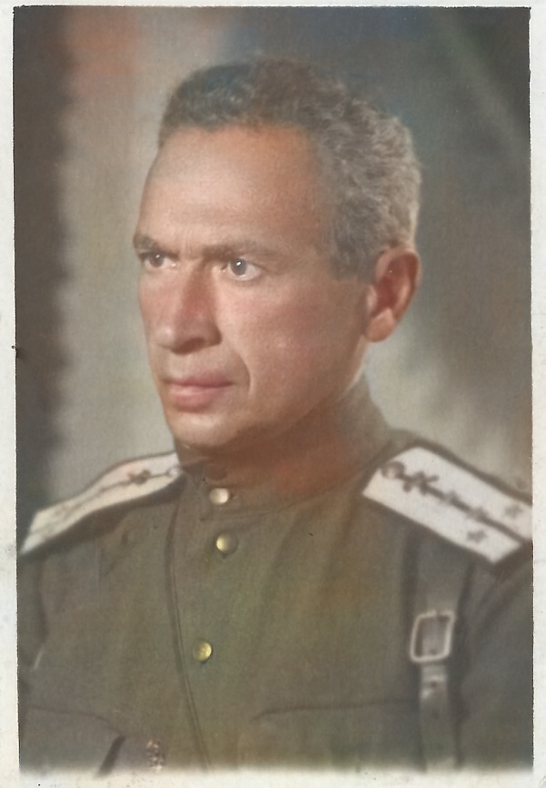 Принимал участие в Великой Отечественной войне. Служил в звании инженер-капитана. Занимался маскировкой зданий и сооружений[8].