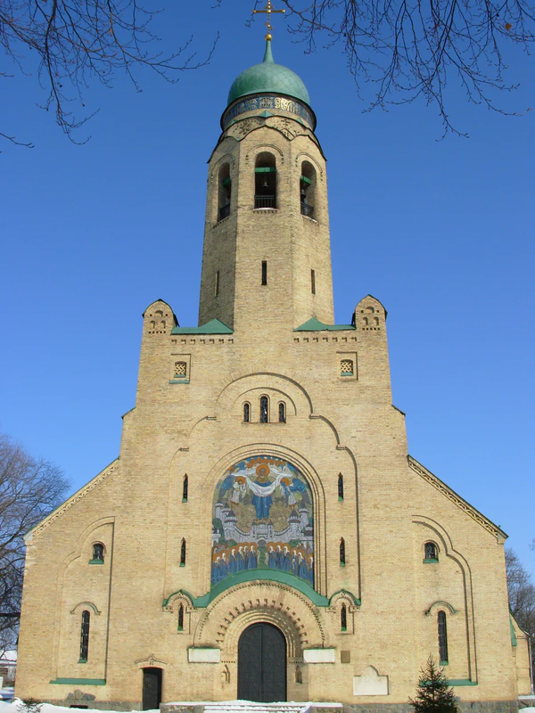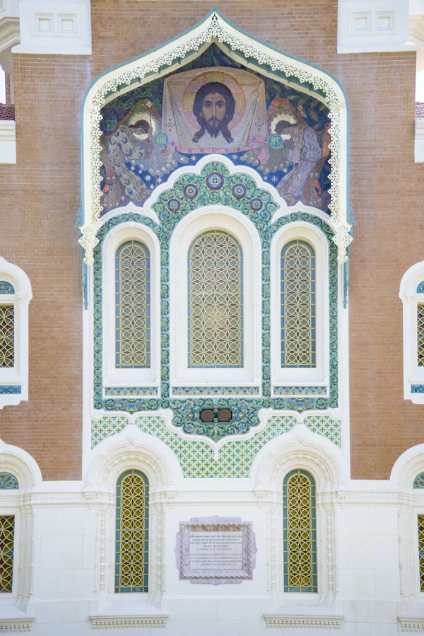 - Церковь Св. Троицы в г. Балаково Саратовской губернии. Наружные мозаики. (1911 г.; худ. И. О. Чириков; арх. Шехтель Ф. О.);