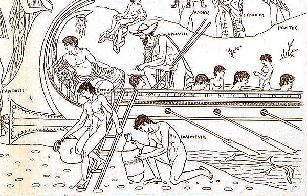 После того, как отец Халкиопы, колхидский царь Ээт, убил Фрикса, его сыновья Арг, Китисор, Мелан и Фронтис отправились на плоту (корабле[5]) к своему второму деду Атаманту, чтобы тот помог отомстить. Во время сильной буриони потерпели крушение, но спаслись на бревне и были выброшены на берег острова Дия рядом с лагерем аргонавтов[5], которые направлялись за золотым руном. Их, «обнажённых и неимущих», подобрал Ясон, выслушал их историю и предложил помочь аргонавтам, не знавшим Колхиды. По отцу братья были родственниками многих из них и потому присоединились к экспедиции[5]. Они привели «Арго» по реке Фермодонт в Колхиду, недалеко от берега велели спрятать корабль, а сами пошли к своей матери, сестре Медеи, и рассказали о благодеяниях Ясона и его целях. Халкиопа передала это Медее и привела её вместе с сыновьями к Ясону. Либо Фронтис ночью увидал Медею через реку в отсветах от лагерного костра и позвал её[1]. Медея узнала возлюбленного по вещим снам и обещала помочь им[7]. После добычи руна братья вернулись с аргонавтами в Грецию[1].