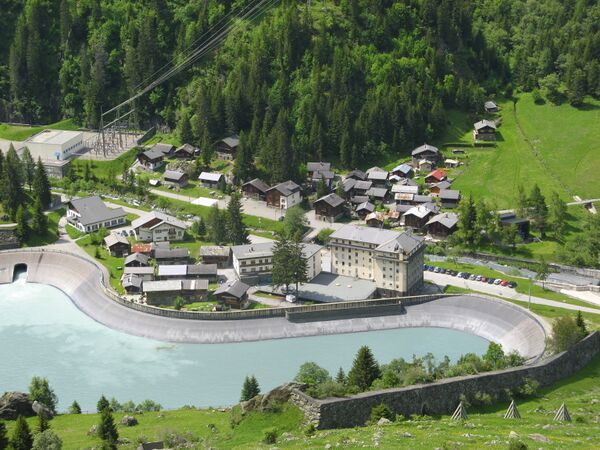 Шале в Фьонне — в основном летние резиденции — расположились между подножием горы и искусственным озером, которое является частью гидроэлектростанции Мовуазен. Мовуазен — самая высокая арочная плотина Европы[3].