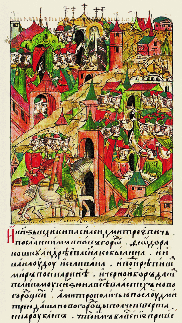 И князь Великий Василий Дмитреевич посла к ним в Новгород Федора Кошку, Андреева сына Кобылина и Ивана Уду и Селивана и подкрепиша мир по старине и черной бор даша великому князю на всех волостях Новгородских[2].