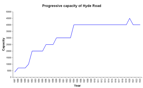 С ростом популярности клуба стадион также подвергался перестройке и улучшениям. В 1890 году клуб вложил в улучшение стадиона 600 фунтов стерлингов. В 1896 году на стадионе появились раздевалки для игроков[6]. В 1898 году была установлена новая трибуна, за которую клуб заплатил 1500 фунтов. В 1904 году на стадионе появилась ещё одна трибуна, что стоило клубу 2000 фунтов стерлингов. После этого «Хайд Роуд» вмещал 40 000 зрителей на трёх трибунах[7]. После этих улучшений «Хайд Роуд» принял несколько престижных матчей, включая матч между сборными Футбольной лиги Англии и Ирландской лиги, а также полуфинал Кубка Англии между «Ньюкаслом» и «Уэнсдей»[8]. В 1910 году над трибунами была возведена крыша, которая покрывала 35 000 зрительских мест[9].