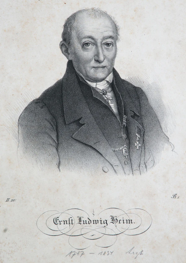 - Georg Wilhelm Kessler: Leben des königlich Preußischen Geheim-Raths Ernst Ludwig Heim, aus hinterlassenen Briefen und Tagebüchern. F. A. Brockhaus, Leipzig 1835,