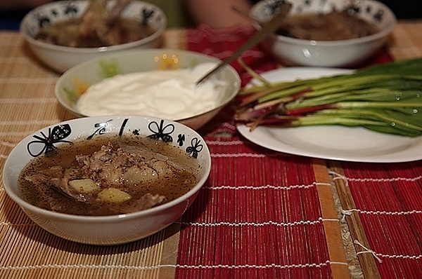 Угре — мясной суп с крупой, который варится на основе мясного бульона из баранины, говядины, конины с косточками. В суп добавляется ячменная или перловая крупа, лук, солёная черемша, сушёный творог или кислая сметана[4].