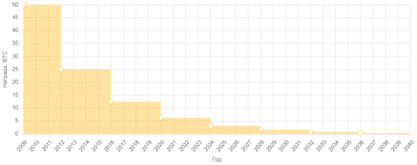 | 2024 | Награда после халвинга — 3,125 BTC. |