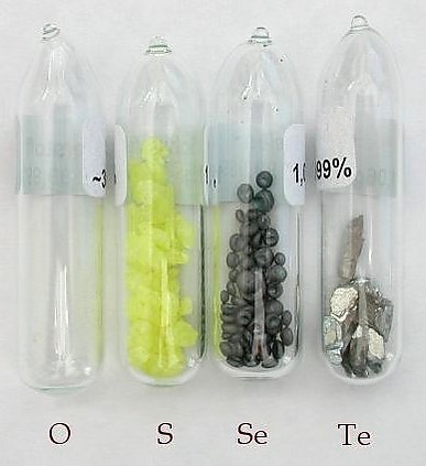 Халькоге́ны (от греч. χαλκος — медь (в широком смысле), руда (в узком смысле) и γενος — рождающий) — химические элементы 16-й группы периодической таблицы химических элементов (по устаревшей классификации — элементы главной подгруппы VI группы)[1]. В группу входят кислород O, сера S, селен Se, теллур Te, полоний Po и искусственно полученный радиоактивный ливерморий Lv. Бинарные соединения этих элементов с металлами носят общее название халькогенидов. Типичная степень окисления −2 (встречается также −1).