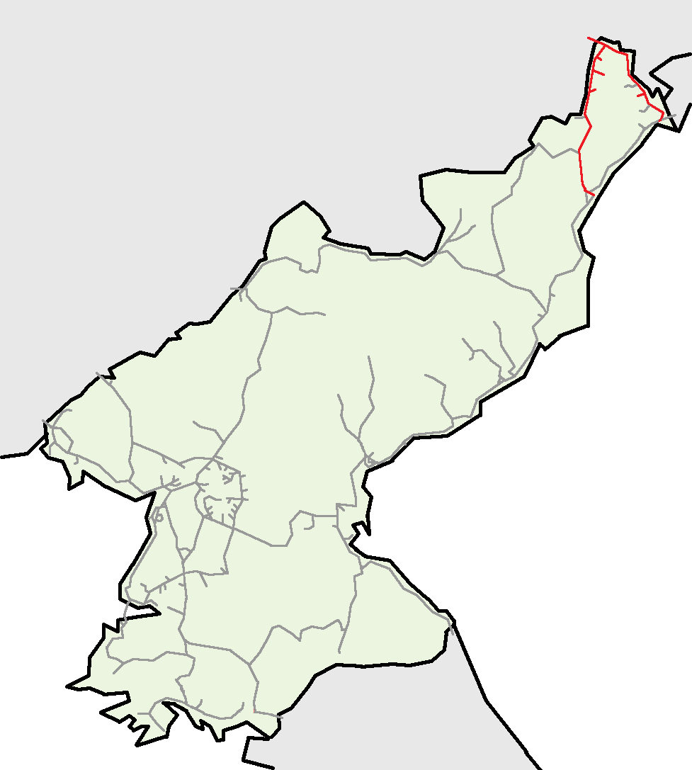 | 10 | 58.7 | Чхонгори | 전거리 (全巨里) | деревня Пхунсан, город Хверён, провинция Хамгён-Пукто | Связана с закрытой шахтой |