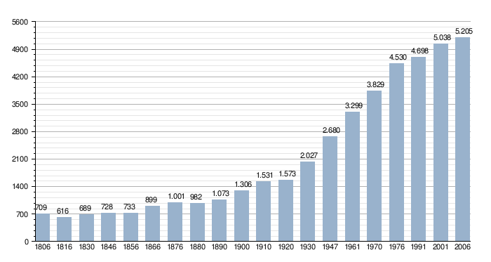 Население Ахела. Данные с 1806 по 2001 год основываются на переписях населения, данные за 2006 год — по состоянию на 1 января.