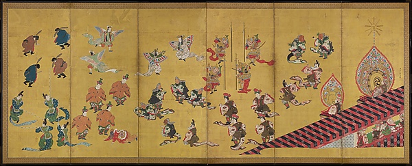 Ханабуса Иттё (яп. 英 一蝶, 1652—1724); имя при рождении — Тага Синко — японский художник, каллиграфист и поэт. Изначально Ханабуса Иттё обучался живописи в школе Кано у мастера Кано Ясунобу, но в итоге полностью отверг этот стиль и стал последователем школы Нанга и так называемой бундзинга (яп. 文人画, «живопись учёных») и экспериментировал с изображениями сцен из повседневной жизни людей[3]. Также использовал псевдонимы Тага Тёко, Хисикава Вао и несколько других.