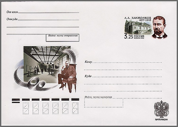 К 125-летию со дня рождения А. Ханжонкова Почтой России был выпущен памятный конверт с оригинальной маркой.