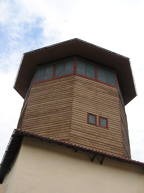 Башня двухэтажная и пустая изнутри. Первый этаж башни сложен в форме куба из скреплённого глиняным раствором бутового камня и оштукатурен. Верхний этаж башни сделан в форме шестигранника, обшит досками и покрыт черепицей. Высота башни составляет более 15 метров. Наверху смотровая площадка с забранными деревянными решетками окнами, на которую ведёт деревянная винтовая лестница.