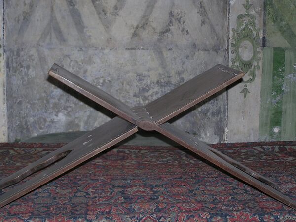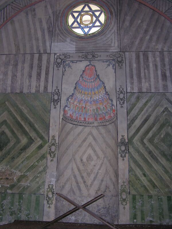 Потолок деревянный, наборный[8]. Во всех стенах были проделаны окна, которые шли в два ряда и были оформлены витражами. До наших дней сохранились окна в восточной стене.