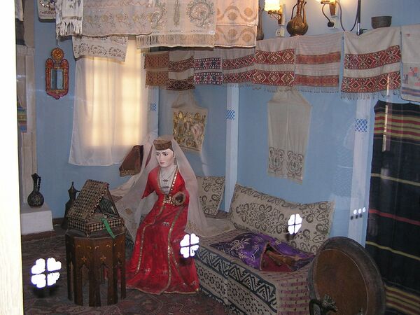 В комнатах покоев размещена экспозиция предметов быта крымских татар. Отдельно выделены «ханская столовая» и «ханская спальня». В спальне есть альков.