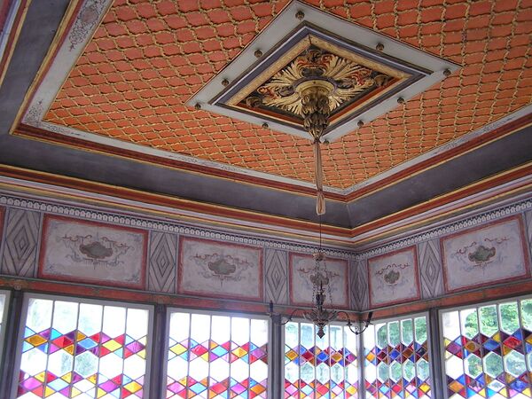 Комнаты имеют резные потолки и витражи на окнах, а также оборудованы каминами. Отделка помещений и планировка существенно изменились после присоединения Крыма к Российской империи.