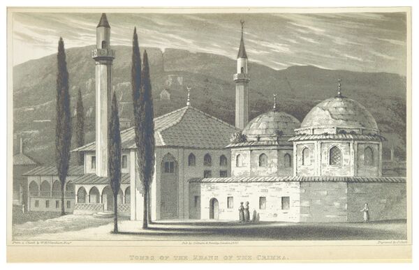 В Бахчисарай приехал я больной. Я прежде слыхал о странном памятнике влюбленного хана. К ** поэтически описывала мне его, называя la fontaine des larmes. Вошед во дворец, увидел я испорченный фонтан; из заржавой железной трубки по каплям падала вода. Я обошёл дворец с большой досадою на небрежение, в котором он истлевает, и на полуевропейские переделки некоторых комнат. NN почти насильно повел меня по ветхой лестнице в развалины гарема и на ханское кладбище[10].