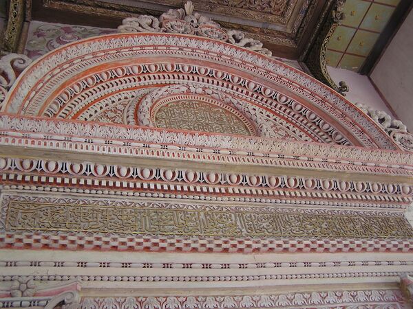 В центре этой надписи изображена Тарак-тамга — символ династии Гераев. Вторая надпись, идущая по фризу, гласит: