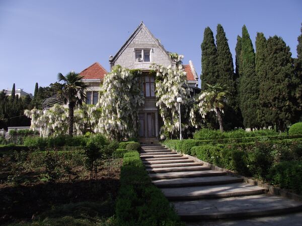Архитектор Н. П. Краснов построил в 1904—1908 годах дворец, а также свитский корпус, которые напоминали шотландские шале под черепичной крышей. От усадьбы до моря проложена широкая лестница.