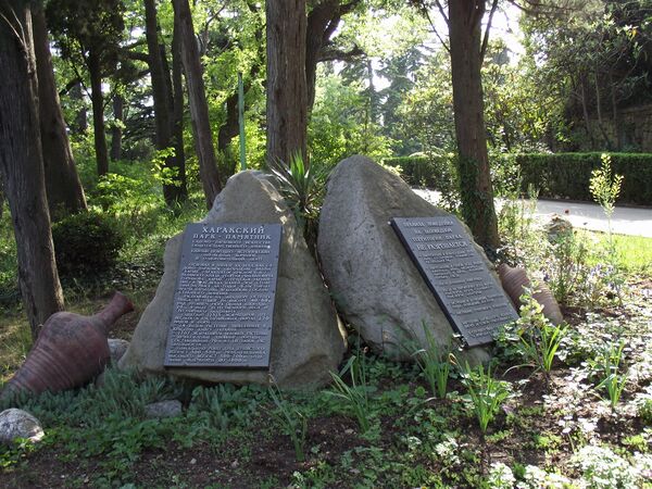 Основал парк великий князь Георгий Михайлович. Название парка, как и имения, происходит от древнеримской крепости Харакс (слово «Харакс» на греческом означает «укрепление»), которая находилась на мысе Ай-Тодор в I—III веках н. э.. Раскопки велись братом великого князя Александром в 1896 году. В 1907—1908 годах им основан музей для находок. В красивом поместье великокняжеская семья отдыхала почти ежегодно.