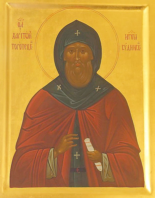 Биографических сведений о нём практически не сохранилось. Харитон Кудинский принадлежит к числу местно-чтимых святых; с какого времени почитается, неизвестно. Мощи Харитона, по сказанию Новгородской Софийской летописи, покоятся под спудом в бывшей монастырской церкви Благовещенья Пресвятой Богородицы, ныне приходской церкви погоста Кудина (на озере Кудине, в трёх верстах от города Торопца Псковской губернии)[2][3][4].