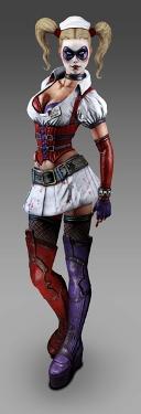 Вместо классического арлекинского костюма эта версия героини носит очень откровенную одежду — корсет, короткие шорты и чулки, причём теперь в красно-синей расцветке (иногда в красно-чёрной, в зависимости от рисовки). В той же гамме покрашены её волосы. Вместо огромного револьвера и гигантского деревянного молота её оружием стали множество ножей и металлическая кувалда. Позже Квинн стала использовать красно-чёрную тему костюма и огромный молот.