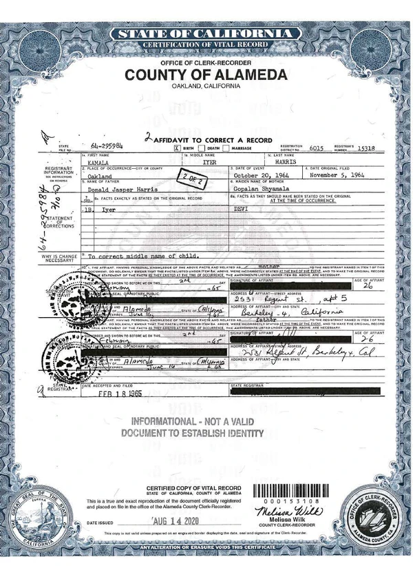 | Имя при рождении | англ. Kamala Devi Harris[1] |