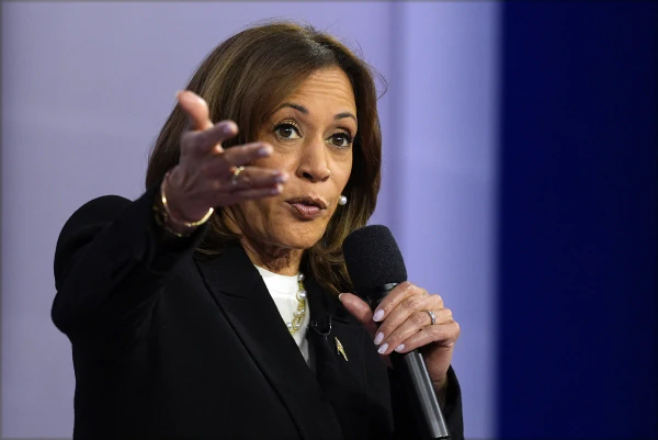 22 июля 2024 года, после того как Харрис оказалась возможным кандидатом от демократов на президентских выборах-2024, предвыборный штаб Трампа заявил, что она «либеральнее Байдена» и обвинил её в поддержке упразднения Агентства США по иммиграционному и таможенному контролю и декриминализации пересечения границ, в одобрении так называемого «Нового зелёного курса», в поддержке предписаний администрации по использованию электромобилей и в поощрении усилий по «лишению финансирования полиции»[57].