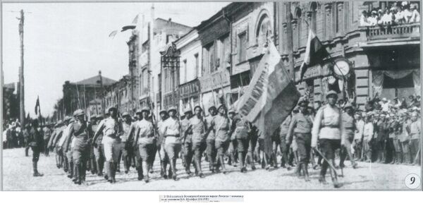 Основные силы Добровольческой армии вступили в город на следующее утро, 25 июня 1919 года, по открытому дроздовцами пути и высадились на Южном вокзале, захватив попутно после короткой стычки оставленные красными на вокзале бронепоезда и бронеплощадки. Затем войска проследовали парадным маршем в сторону центра города по улице Екатеринославской (нынешний Полтавский Шлях). Во главе войск шёл командир дроздовцев генерал В. К. Витковский.[5]