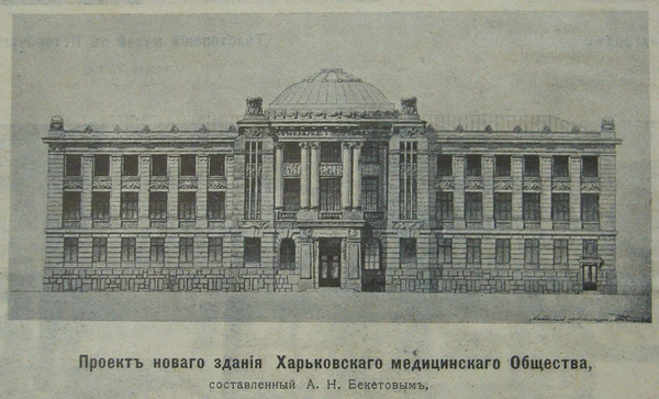 Здание для Харьковского медицинского общества и Пастеровского института (Дворец медицины; Пушкинская, 14; сейчас здесь размещается НИИ микробиологии, вакцин и сывороток им. И. И. Мечникова) было построено по проекту А. Н. Бекетова (1910—1913).