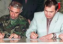 Кроме них соглашения подписали заместитель секретаря Совета безопасности России Сергей Харламов и вице-президент ЧРИ Саид-Хасан Абумуслимов.