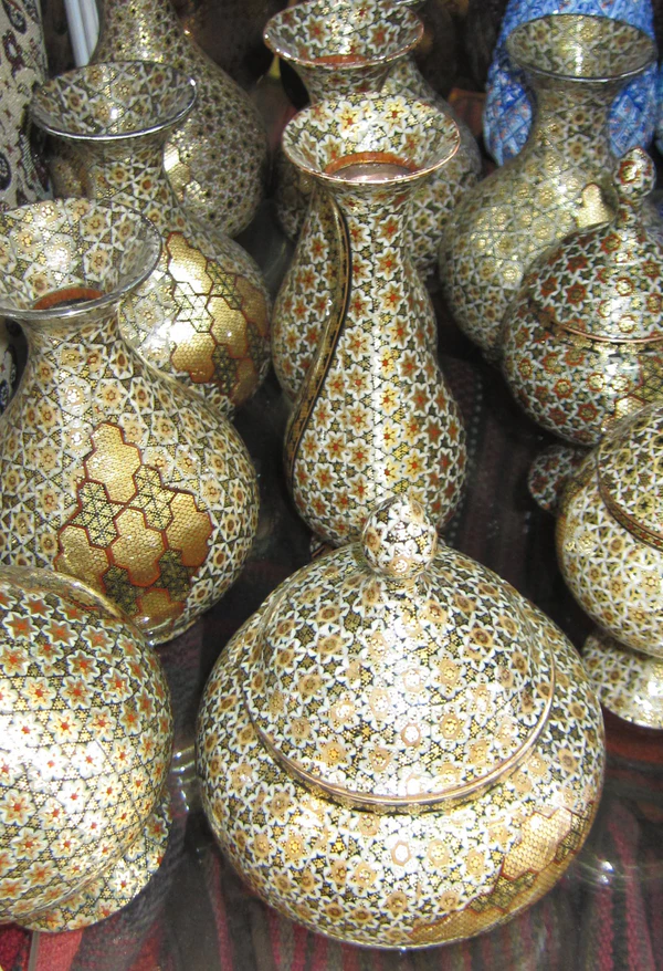 Последним этапом является придание изделию характерного блеска и защита его от перепадов температур, мелких царапин и т. п. В эпоху правления Сефевидов применяли сосновую смолу. В XX веке использовались различные виды лака. В настоящее время готовые изделия обрабатывают полиэфирными смолами в специальных камерах. Также мастера включают в работу серебряные украшения и традиционную роспись по эмали минакари.