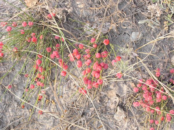 - Ephedra distachya subsp. monostachya (L.) Riedl [syn. Ephedra monostachya L. basionym] Растения из восточной Европы (Россия) с более гладкими стеблями и несколько более мелкими семенами[20]. Имеет крупные шишкоягоды, которые в Поволжье и Сибири известны как «степная малина». Был описан как отдельный вид в 1753 году Карлом Линнеем в первом издании «Species plantarum». Типовая местность — Сибирь[13].