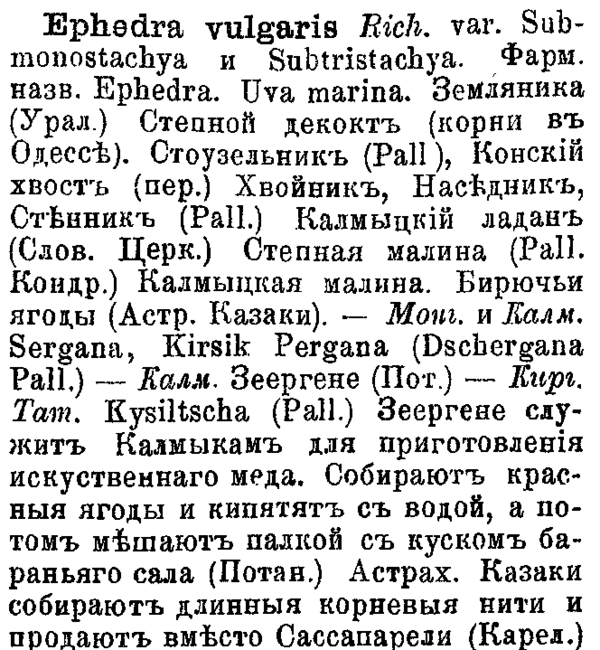 В прошлом калмыки готовили из шишкоягод хвойника двухколоскового похожее на варенье блюдо под названием «бал»[36].