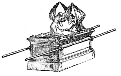 В Скинии, поверху крышки Ковчега Завета, вероятно по коротким её сторонам, были установлены два литых из золота херувима лицом друг к другу, с распростёртыми, как бы прикрывающими Ковчег, крыльями (Исх. 25:18-20, 37:7–9). Херувимы и крышка Ковчега (др.-евр. — капорет) составляли единое целое. В тексте отсутствует подробное описание херувимов, говорится лишь, что они обладают крыльями и лицами. Представляется, что, располагаясь на крышке Ковчега Завета, херувимы одновременно символизировали престол невидимого Бога и служили защитой Ковчега. Бог сообщил Моисею, что над Ковчегом между двумя херувимами он будет открываться ему и, через него, давать заповеди народу Израиля (Исх. 25:22).