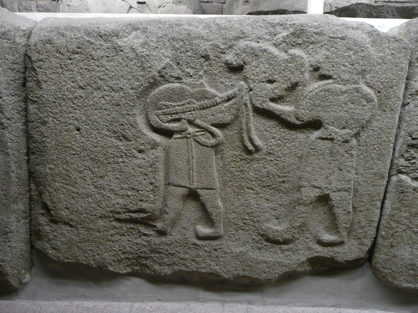 На позднехеттском рельефе из Каркемеша изображён молодой человек, держащий в руке что-то вроде погремушки или клаве.