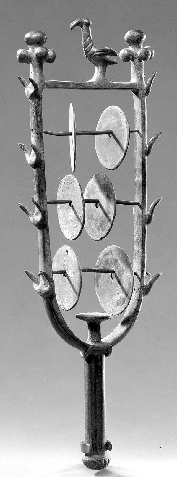 Систры археологически засвидетельствованы с раннего бронзового века (III тысячелетие до н. э.). Они состоят из U- или V-образной рамы с тремя поперечинами, на каждой из которых закреплены две металлические пластины. Существуют два хорошо сохранившихся систра из Хорозтепе, которые украшены птицами, крупным рогатым скотом, оленями и другими животными[28].